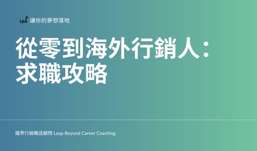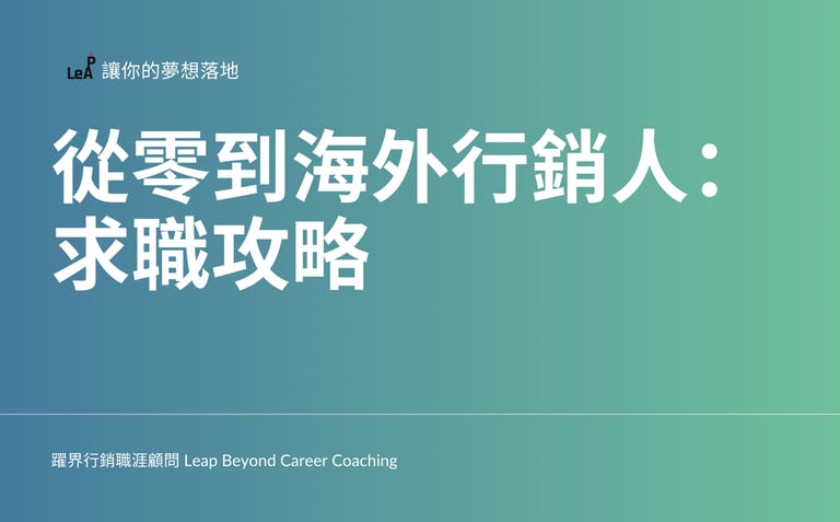我深知轉職路上有多孤單,也知道光有「證照」是不夠的。華人背景在海外職場常會遇到履歷卡關、面試被質疑、缺乏實戰成果等困境,這些我都走過。所以我打造了 Leap Beyond 顧問服務,透過我的海外求職課程、一對一諮詢與實戰訓練,協助你從履歷健檢到技能補強、從面試演練到心態重建,一步步走出自己的海外行銷職涯路。